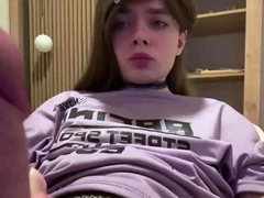 Lovely Asian tgirl sucks her lips on huge throbbing cock