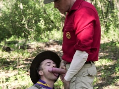 DILF fucks twink on a tree outdoors